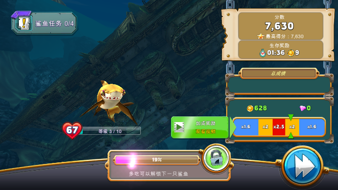 进入游戏以后,你就可以开始体验游戏了,重点是破解版的游戏,你需要大鱼吃小鱼哦,重点是不要碰到比你大的鱼,不然小心被吃掉了。