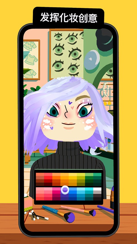 1、 支持彩妆修饰与面部彩绘双重玩法,既能用睫毛膏、眼影等精细彩妆工具打造精致妆容,也能直接在角色脸部绘制独一无二的专属图案。