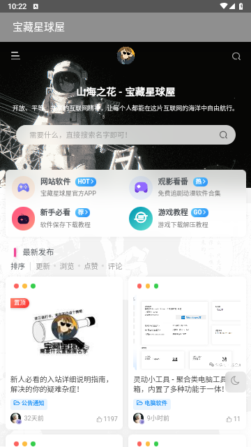 宝藏星球屋是一款资源搜索下载软件,资源丰富、更新及时、操作便捷。软件不仅提供了大量的免费软件资源,还通过智能推荐功能帮助他们快速找到所需的应用。软件的界面设计简洁直观,新手也能轻松上手。有需要的朋友们不能错过,快来下载吧。