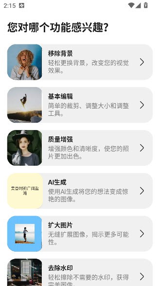 进入app以后,你就可以选择你需要的功能来编辑图片了