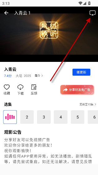 然后点击视频右上角的tv图标就可以电视投屏播放了