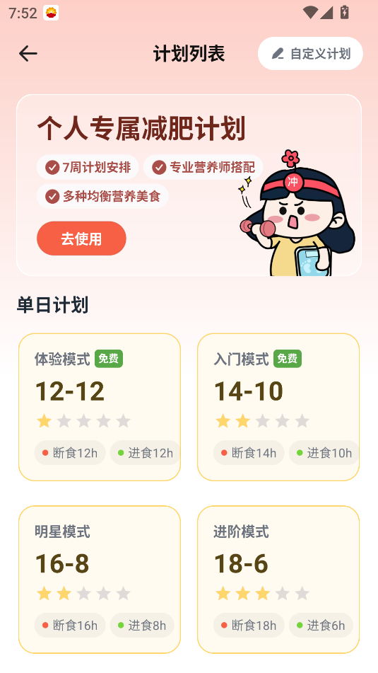 计划模式很灵活,不强迫你必须按固定节奏来,能自己调整,让断食更好地融入日常习惯,不用硬凑时间。