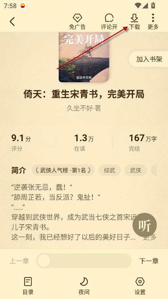 在弹出的菜单里选择 “书籍详情”,如果这本小说有其他用户留下的评论,在这里就能直接看到大家的讨论。