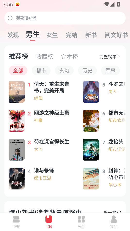 细分了 18 大分类榜单,玄幻奇幻、都市职业、武侠仙侠、现代言情、古代言情、架空历史、耽美同人等,按分类找书更精准;