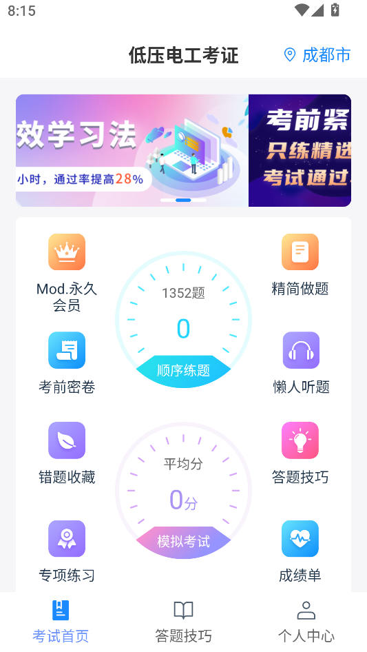 电工证宝典app永久vip版是一款电工证典App,专业备考,轻松取证! 提供电工证考试题库、模拟考试、考试技巧、复习资料等功能,帮助你高效备考,顺利通过电工证考试。软件涵盖电力工程基础、电力电子技术、电力系统及设备、电气控制技术等知识点,能全面覆盖电工考证所需的知识范围。同时它还有智能化题目筛选和错题分析功能,帮用户了解自身学习进度与薄弱环节,方便进行针对性学习。