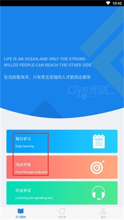 1、在本站下载软件,双击打开软件,点击每日学习和闯关评测