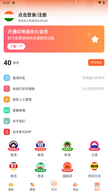 3、除印地语外,支持日语、韩语、法语等30+主流及冷门语种学习。