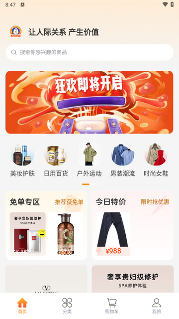 2、商城页面展示精选好物和促销活动,按销量和评价排序,轻松发现高性价比商品。