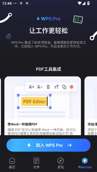 WPS Office破解版是有你游手游网整理的一款可以免费试用的办公软件,在WPS Office破解版中你可以体验到多种好用的办公操作哦,而且在文档,以及办公体验还是很不错的,喜欢的话就来试试WPS Office破解版。