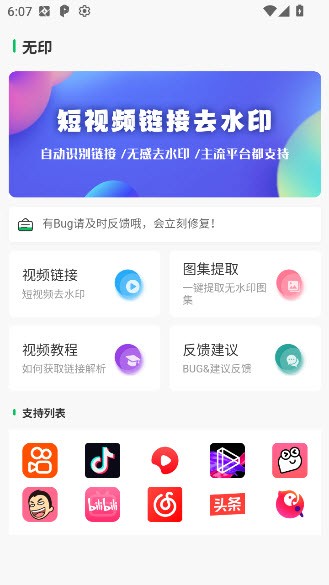 无印去水印app最新版是有你游手游网整理的一款非常好用的短视频去水印的平台,在无印去水印app最新版中你可以在线一键去水印哦,而且在多种水印功能,去水印操作来说还是很不错的,喜欢去水印的话就来试试无印去水印app最新版。