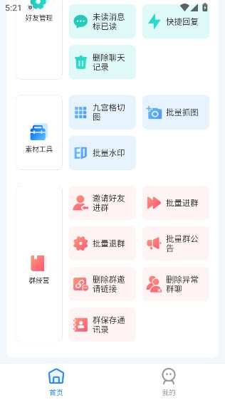 进入app以后,你就可以看到海量的功能了,包括微信群管理哦,图片制作等等