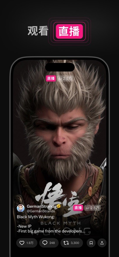 • 观看影片:从即时突破新闻和体育片段,到播客和游戏会话,最长可达 3 小时。世界上许多领先的声音,在喜剧、游戏、播客和政治领域,都在 X 上分享内容。