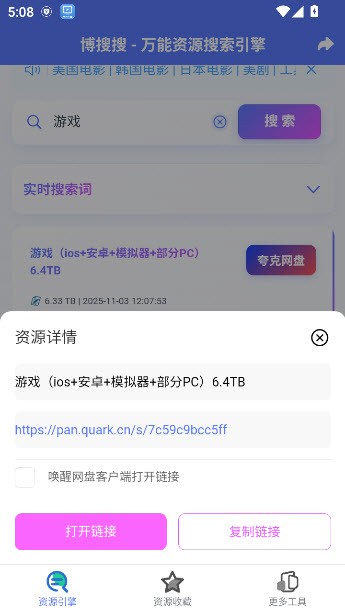 博搜搜app是有你游手游网整理的一款非常好用的网盘搜索工具软件,在博搜搜app中你可以体验到多种文档搜索哦,而且支持夸克和百度网盘哦,搜索还是很强大的,需要的话就来试试博搜搜app。