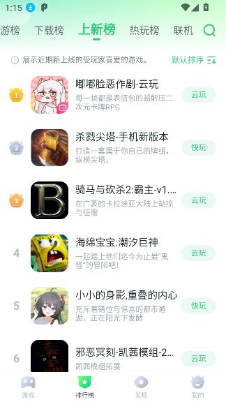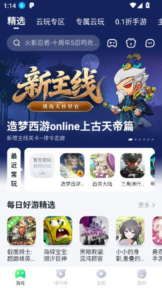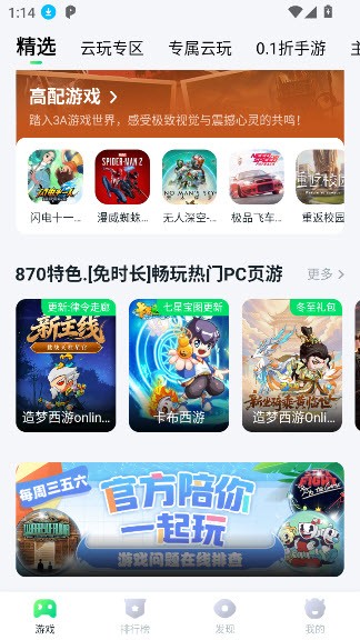 进入app以后,你就可以看到多种云游戏体验了