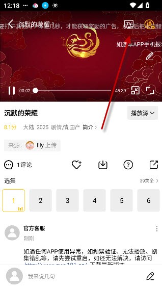 然后点击视频右上角的tv图标就可以电视投屏播放了