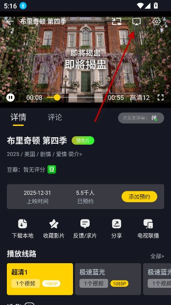 然后点击视频右上角的tv图标就可以电视投屏播放就可以了